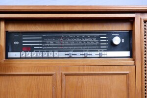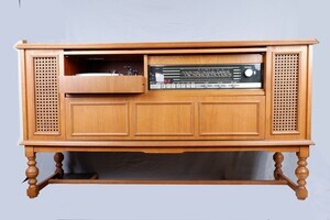 Rosita war ein Hersteller hochwertiger Tonmöbel aus Paderborn. In die Möbel baute er Unterhaltungselektronik ein, die durchweg zu den Spitzenmodellen deutscher Hersteller zählten. Unsere Musiktruhe, in heller Eiche furniert, besitzt 2 Frontklappen. Hinter der oberen befindet sich ein Stereo Radio und ein Plattenspieler. Hinter der unteren Frontklappe finden sich zwei leere Fächer, die einer individuellen Nutzung vorbehalten sind. Es handelt sich um das Modell „Rosita Mainz“ und stammt etwas aus dem Jahr 1972. Der (nachträglich) eingebaute Plattenspieler ist der Dual 1220, ein 10er Wechsel, mit den Geschwindigkeiten 33 und 45 Upm. Ursprünglich wurde die Truhe mit dem Plattenspieler Dual 1211ausgeliefert. Das Radio ist ein, zum Einbau geeignetes Grundig Chassis "8074 ST." Der Stereo Empfänger ist mit Transistoren bestückt, verfügt über die Wellenbereiche LW/MW/KW und UKW. Die vier Lautsprecher mit 5 Watt Leistung verleihen der Truhe einen guten, vollen Klang.