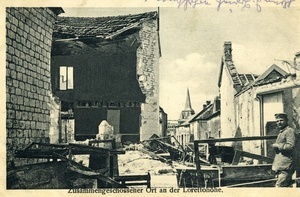 Postkarte "Zusammengeschossener Ort an der Lorettohöhe"