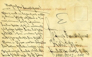 Karte im Hochformat. Auf der Vorderseite: Portrait von Prinz Oscar von Preussen mit entsprechender Beschriftung. Auf der Rückseite: Adressat: "Herrn/ Ernst Kantlehner/ Köln a. Rhein/ Händelstr.(?) Nr. 27", Grußwort mit schwarzer Tinte und in Sütterlinschrift verfasst.