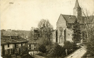 Karte im Querformat. Auf der Vorderseite: Ansicht auf Olicy. Auf der Rückseite der Text: "Charfreitag Abend, 1917/ Meine Liebste Selma u. Kinder!/ Hatte zwar gestern u. heute/ auf ein Lebenszeichen von die gehofft, doch leider vergeblich-,/ kann gut merken, daß du am/ arbeiten bist u. dazu ist noch Char-/ woche, wo du zu putzen hast. Heute/ war hier zum ersten mal schönes/ Frühlings-Wtter. Hast du die Packet-/chen mit der Suppen-Kratware u./ das mit dem Zucker u. den Ringlein/ erhaletn. Heute Nachtmittag hatte ich/ eine Beschäftigung, dabei dachte ich/ auch an den Ernst, hätte nämlich/ beim Pferde-Apell einen "Schimmel"/ zu halten u. da waren auch welche/ die Sätze machten. nun sende euch/ nochmals Herzliche Ostergrüße/ Euer Vater Ernst."