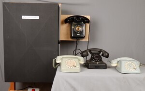 Private Nebenstellenanlagen sind Vermittlungseinrichtungen, die im Privaten betrieben werden. Anwender sind Firmen, Betriebe, Institutionen, die innerhalb Ihrer Organisation ein telefonisches Kommunikation Bedürfnis haben, das nicht über das öffentliche Telefonnetz abgewickelt werden soll. Der Zugang zum öffentlichen Telefonnetz, ist trotzdem gewährleistet und kann auch auf die internen Nebenstellen ausgeweitet werden. Verbindungen zum öffentlichen Telefonnetz erfolgten je nach Berechtigung der Teilnehmer entweder selbstständig oder über die „Vermittlung“ Ankommende Anrufe aus dem öffentlichen Telefonnetz gelangten zur „Vermittlung“ , die diese ggfls. zu den gewünschten Teilnehmern weiter vermitteln konnte. Versorgt wird unsere Anlage mittels 24V Schaltnetzteil, was nicht typisch für die 50er Jahre ist. Ursprünglich wurden solche Anlagen mit einer 12-zelligen Bleibatterie mit Netz-Ladegleichrichter versorgt, damit sie auch bei Stromausfall noch funktionierten. Die in unserem Bestand befindliche Nebenstellenanlag CAS-053/53 IV wurde komplett Restauriert und stammt aus den frühen 1950er Jahren. Sie verfügt bereits über einen vollautomatischen, internen Verkehrsablauf, bei dem die Teilnehmer sich gegenseitig durch Wahl der entsprechenden Nr. erreichen konnten. Der ehemalige Mitarbeiter der T & N, Heribert Hanck aus Trier, hat die Anlage komplett restauriert und dem Museum freundlicherweise geschenkt. Zu Demonstrationszwecken hat er die Anlage mit vier zeitgemäßen Endgeräten von N & T ausgestattet. Damit wird das Telefonfeeling der 50er Jahre, auch durch die bekannten Klingeltöne, noch einmal erlebbar. (Quelle: Heribert Hanck, 54296 Trier)