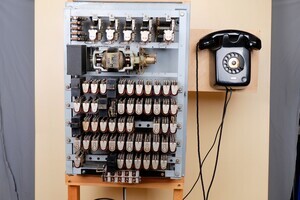Private Nebenstellenanlagen sind Vermittlungseinrichtungen, die im Privaten betrieben werden. Anwender sind Firmen, Betriebe, Institutionen, die innerhalb Ihrer Organisation ein telefonisches Kommunikation Bedürfnis haben, das nicht über das öffentliche Telefonnetz abgewickelt werden soll. Der Zugang zum öffentlichen Telefonnetz, ist trotzdem gewährleistet und kann auch auf die internen Nebenstellen ausgeweitet werden. Verbindungen zum öffentlichen Telefonnetz erfolgten je nach Berechtigung der Teilnehmer entweder selbstständig oder über die „Vermittlung“ Ankommende Anrufe aus dem öffentlichen Telefonnetz gelangten zur „Vermittlung“ , die diese ggfls. zu den gewünschten Teilnehmern weiter vermitteln konnte. Versorgt wird unsere Anlage mittels 24V Schaltnetzteil, was nicht typisch für die 50er Jahre ist. Ursprünglich wurden solche Anlagen mit einer 12-zelligen Bleibatterie mit Netz-Ladegleichrichter versorgt, damit sie auch bei Stromausfall noch funktionierten. Die in unserem Bestand befindliche Nebenstellenanlag CAS-053/53 IV wurde komplett Restauriert und stammt aus den frühen 1950er Jahren. Sie verfügt bereits über einen vollautomatischen, internen Verkehrsablauf, bei dem die Teilnehmer sich gegenseitig durch Wahl der entsprechenden Nr. erreichen konnten. Der ehemalige Mitarbeiter der T & N, Heribert Hanck aus Trier, hat die Anlage komplett restauriert und dem Museum freundlicherweise geschenkt. Zu Demonstrationszwecken hat er die Anlage mit vier zeitgemäßen Endgeräten von N & T ausgestattet. Damit wird das Telefonfeeling der 50er Jahre, auch durch die bekannten Klingeltöne, noch einmal erlebbar. (Quelle: Heribert Hanck, 54296 Trier)