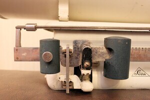 Bei unserem Objekt handelt es sich um die Säuglingswaage der Firma Seca aus Hamburg, mit der Modellbezeichnung 168. Der Hersteller Seca hat dies Modell ab 1935 unverändert produziert bis das Werk im Juli/Aug 1943, bei den schweren Luftangriffen auf Hamburg (Unternehmen Gomorra), vollständig zerstört wurde. Es gingen aber nicht nur die Gebäude verloren, auch sämtliche Dokumente, Zeichnungen, Werkzeuge und Maschinen wurden vernichtet. Nach dem Krieg wurden neue Werkzeuge angefertigt und das Modell erneut aufgelegt. Erst Anfang der 1960err Jahre wurde das Produkt durch ein Neues ersetzt. Quelle: Fa. Seca, Hamburg