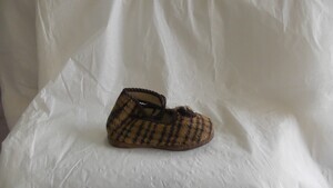 Zwei Kinder-Badepantoletten aus buntem Kunststoff. Es handelt sich um einen rechten Schuh mit roter Sohle und einen linken mit blauer Sohle. Eckige Form. Die gesamte Oberseite der Schuhe ist mit Wackelbildern versehen, welche Motive des Comics "Die Schlümpfe" zeigen. Beide Schuhe zeigen die selben Motive. Es handelt sich um zwei Einzelstücke, welche als Vertretermuster gefertigt wurden. Hergestellt in Japan. Datiert auf 1979.