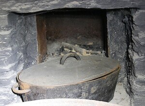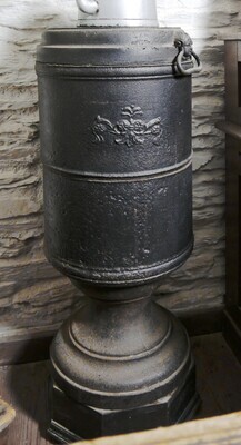 Ein Quintofen ist ähnlich wie ein Pottofen ein meist ziemlich kleiner runder Ofen ohne Ausmauerung mit flachem Abschluss mit Sockel oder Füßen. Quintöfen besitzen zudem eine flache Haube mit zwei Griffen, die wie eine umgedrehte Schüssel den Ofen bedeckt. Die Schüssel konnte bei Bedarf umgedreht und zum Erwärmen von Wasser verwendet werden. Der Name kommt von der Hütte in Quint (heute ein Stadtteil von Trier), die ihn erstmalig hergestellt hat. Ob dieser Ofen in Quint hergestellt wurde liegt zwar nahe, läßt sich ohne weitere Informationen nicht sicher sagen, da dieses Modell auch bei anderen Hütten verbreitet war. Der Ofen ist ein so genannter Hinterlader, d.h. er wurde vom Nebenraum (oder Flur) aus befeuert. Hergestellt wurde der Ofen von der Eisenhütte in Quint (heute ein Stadtteil von Trier). Diese wurde 1683 gegründet und entwickelte sich im Laufe der Zeit zu einem bedeutenden Unternehmen. Sie betrieb von 1857 bis 1891 bei Schweich ein eigenes Eisenbergwerk. Nach mehrfachem Besitzerwechsel kommt das Unternehmen zum Klöckner-Konzern, der 1925 das Walzwerk stilllegt und zum 31.1.1972 diesen Unternehmensteil ganz aufgibt. Quint-Öfen wurden von Ende des 17. Jahrhunderts bis 1960 hergestellt. Heute (2021) sind nur noch das Schloss des Hüttenherrn und einige Verwaltungsgebäude erhalten.