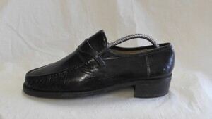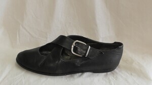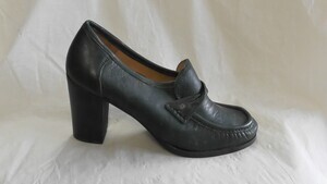 Ein Paar Damen-Mokassins aus dunkelbraunem Leder. Spitze Form, Absatz (ca. 2cm). Die Schuhe verfügen über je einen Zierriemen mit Schnalle und Fransen, sowie je einen genähten Wulst. Hergestellt von der Firma Ottgo in Deutschland. Datiert auf die 1950er Jahre.