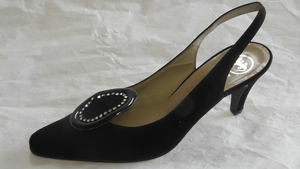 Ein einzelner Pumps aus hellbraunem Veloursleder und Leder. Runde Form, mit Veloursleder bezogener Keilabsatz (ca. 3cm). Damengröße 6,5. Der Schuh verfügt über Raffungen. Es handelt sich um ein Muster der Schuhfabrik Nijma. Datiert auf 1953.