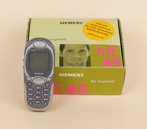 Das Siemens Handy ME45 war die Outdoor-Version des S 45. Das ME45 besaß den gleichen Funktionsumfang wie das S45, war jedoch in einem etwas robusteren Gehäuse mit leicht veränderter Tastenanordnung eingebaut. Das ME 45 kam im Juli 2001 als Oberklassenhandy auf dem Markt und kostete bei der Einführung kostete knapp 300 €. Es konnte im GMS Dualband 900 und 1800 Mhz genutzt werden. Der Akku war erst nach 300 Std Standby bzw. 6 Std Dauergesprächen erschöpft. Die Ausstattung war reichhaltig. 500 Speicherplätze im Telefonbuch, die SMS-Eingabehilfe T9, Klingeltöne konnten selbst komponiert werden, Sprachwahl, Internetzugang und eine Infrarot Schnittstelle um nur Einiges zu nennen. Im der vorhandenen Originalverpackung befindet sich neben dem Handy noch die Original Bedienungsanleitung und ein Zubehör Flyer