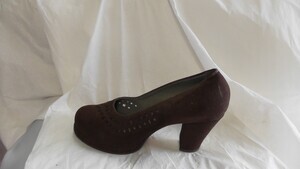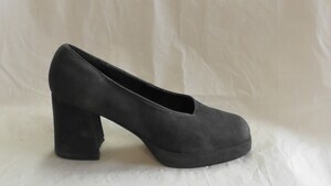Ein Paar Damenstiefeletten aus schwarzem Veloursleder. Spitze Form, mit Veloursleder bezogener Absatz (ca. 10,5cm), Plateau (ca. 2,5cm). Damengröße 7,5. Die Schuhe verfügen über je einen rückseitigen Reißverschluss. Hergestellt in Italien. Datiert auf die 1970er Jahre.