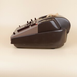 Victor Adding Machine Co., aus Chicago/USA produzierte zwischen 1918 und 1973 Aditions und Rechenmaschinen. Unser Objekt besitzt die Typenbezeichnung 74 85 54 und wurde 1971/1972 hergestellt. Der Ladenpreis lag damals bei stolzen 1080 DM. Das Modell 74-85-54 der Custom-Serie, wurde erst ab 1971 angeboten. Diese Maschine war jedoch nicht neu. Sie existierte mindestens schon 1963 und wurde aus unbekannten Gründen für einige Zeit-vielleicht nur in Deutschland? -aus dem Standardprogramm herausgenommen. An Rechenoperationen können Addition, Subtraktion und Multiplikationen durchgeführt werden. Die Zifferneingabe erfolgte über eine Zehnertastatur, die Löschung einer Zahl mittels Schiebehebel. Der Antrieb erfolgte über einen Elektromotor, der Ergebnisausdruck auf Papier(rolle) Die Victor wurde in 2 Farbvarianten verkauft. Entweder in grün/grau oder in braun, wie unser Modell.