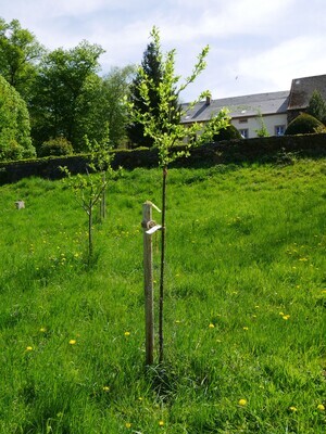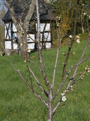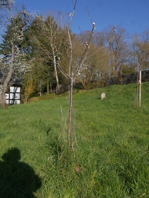 1837 im Garten des Freiherrn von Wangenheim, in der Nähe von Gotha gefunden. Mittelgroße ovale und süße Früchte. Robuste Sorte: Frosthart, auch für raue Lagen geeignet. 2019 gepflanzt
