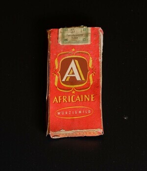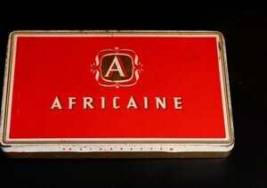 Africaine ist ursprünglich eine Luxemburgische Zigarettenmarke und kam in den frühen 1940er auf den Markt. Nach dem Krieg wurde sie auch im Süd-Westen Deutschlands sehr populär. Herstellung und Vertrieb erfolgt –bis heute- durch die Firma Landewyck in Trier. Africane gehörte zu den sogenannten „schwarzen Zigaretten“ wie sie auch in Frankreich gerne geraucht wurden. In Deutschland war dieser Zigarettetyp –wie auch Roth Händle, Maryland und Bali - steuerbegünstigt. Warum ? Sie enthielten einen hohen Anteil an Inlandstabak, dessen Absatz so gefördert werden sollte. Äußerlich erkennbar, an einer GRÜNEN Steuerbanderole. Diese wurden in der Bundesdruckerei gedruckt und nach Bezahlung der „Banderolensteuer“ an die Hersteller ausgeliefert. (Siehe auch Link zu Tabaksteuer) Der Steuerbegünstigte Verkaufspreis lag für alle Verpackungsgrößen, bei 7,5 Pfg/Stück. 1959 gab es die Africaine in einer 4er zu 0,30 DM, eine 12er Packung zu 0,90 DM sowie eine 48er Geschenkpackung aus Blech zu 3,60 DM.