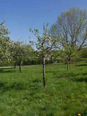Elstar wurde 1955 in den Niederlanden am Institut für gärtnerische Pflanzenzüchtung in Wageningen gezüchtet. Die Züchtung aus Golden Delicious und Ingrid Marie ist die Apfelsorte, die im Jahr 2012 in Deutschland am häufigsten angebaut wurde. Angebaut werden veschiedene gelb-rotschtreifige bis ganz rote Mutanten. Elstar zählt zu den im Supermarkt angebotenen Äpfeln, die Allergien vom Anschwellen der Lippen über Jucken in Mund und Rachen bis zu Atemnot und Asthmaanfällen auslösen können. Vermultich um 2015 gepflanzt.