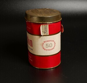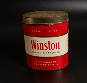 Winston ist ursprünglich eine amerikanische Zigarettenmarke, der Firma Reynolds. 1959 kaufte Reynolds die Zigarettenfabrik „Haus Neuerburg“ aus Trier und hatte somit Zugang zum deutschen Markt. Es folgte ab 1961 die Einführung mehrere Reynolds Marken, wie Reyno, Camel, Winston u.a. Heute gehört die Marke „Winston“ zur Japan Tobacco Inc (JTI) in Trier. Unser Objekt ist eine Winston Geschenkpackung (Blechdose) etwas aus dem Jahr 1965, mit 50 Zigaretten zu je 10 Pfennig das Stück. Die Geschenkpackung wurde vorwiegend zu Weihnachten hergestellt. Die Standardgröße der Winston war eine 20er Box zu 2,00 DM.