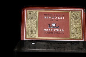 Senoussi ist, wie Name und die Optik der Packung signalisieren, eine Orient Zigarette aus dem Hause Reemtsma, in Hamburg. Sie wurde zwischen 1924 und 2002 hauptsächlich auf dem deutschen Markt verkauft. Wurde die Zigaretten ursprünglich in einer 25er Blechpackung verkauft, änderte sich dies in den 1960er Jahren. Die Hauptgröße war eine 20er Hart box Packung. Zusätzlich, primär zur Weihnachtszeit, wurde eine bedruckte 50er Blechpackung als Geschenkpackung produziert. Wir besitzen 2 Packungsgrößen. Zum einen, die alte 25er bedruckte Blechschachtel, sowie die 50er Geschenkpackung ebenfalls in Blech. Auf der bedruckten Deckelinnenseite der 25er Bleckpackung ist, neben dem Namen Senoussi und Reemtsma, auch ein Wickingerschiff zu sehen. Sein Bug, als Drachenkopf ausgebildet, ist das bekannte Reemtsma Logo.