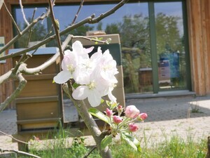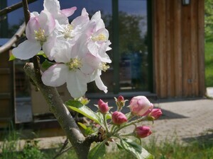 Die alte Apfelsorte Engelsberger Renette wurde 1854 aus einem Zufallssämling gezüchtet. Zunächst war sie vor allem im Bereich des heutigen Baden Württemberg verbreitet und ist heute in vielen Apfelanbauregionen heimisch. Der saftige Apfel ist ein sehr guter Mostapfel. Die Engelsberger Rennette ist anspruchslos an Boden und Klima und auch für höhere Lagen geeignet. Insgesamt ist sie ein sehr widerstandsfähiger Baum. Als solcher ist er für Streuobstwiesen interessant. Die Früchte bei den Fotos sind noch nicht ganz reif. Reife Früchte besitzen oft rotgefärbte Bereiche.