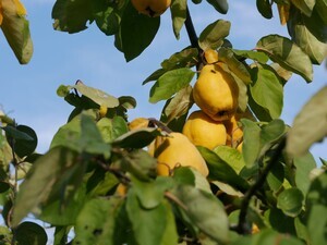 Quitten werden als Obstbäume seit 4000 Jahren kultiviert. Die ursprüngliche Heimat liegt im östlichen Kaukasus und im Transkaukasus. Die Hauptanbaugebiete liegen in Usbekistan, der Türkei, China und dem Iran. Quitten sind sommergrüne, dornenlose Bäume oder Sträucher. In Kultur wurden sie oft auf Weißdorn (Crataegus) gepfropft (heute allerdings bevorzugt auf speziell geeignete Quittenunterlagen), während sie ihrerseits gerne als Unterlage für Birnen (Pyrus) genommen werden, deren Früchte dadurch früher reifen und besonders aromatisch werden. Gepflanzt im Rahmen des Sortengartens Ende der 1980er-Jahre