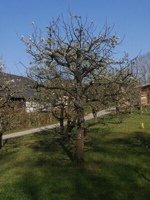 Die Schweizer Wasserbirne ist ein Zufallssämling, der vermutlich in der Schweiz entstanden ist. Sie wird 1823 erstmals erwähnt und ist in der Schweiz und besonders in Württemberg verbreitet. Er kann ein Alter von 100 bis 150 Jahre erreichen. Vor allem im Streuobstbau prägt er die Landschaft. Die Hauptäste sind meist aufrecht, die Zweige braun, etwas silberhäutig, mit spitzen Augen. Der Baum gedeiht in allen Lagen und Bodenarten, vor allem in höheren Lagen, wo die Früchte gehaltreicher werden. Er gibt sehr viel Most, der klar und licht ist. Er ist leicht und wenig haltbar. Die Frucht kann auch gegessen, gedörrt und gekocht werden. Die Sorte wird Mitte Oktober reif und trägt große, fast kugelige Früchte. Ende der 1980er-Jahre im Rahmen des Sortengartens gepflanzt.