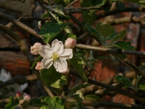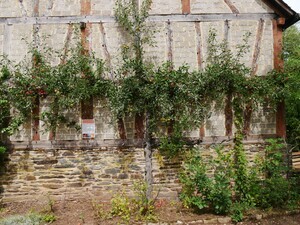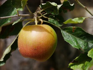 Die Apfelsorte Jonathan entstand aus einem Sämling der Sorte Esopus Spitzenberg in New York (State) und wurde 1826 erstmals beschrieben. Der Baum benötigt einen warmen Standort und einen nährstoffreichen, eher trockenen Boden. Der Ertrag ist regelmäßig und hoch. Anfälligkeit besteht gegenüber Apfelschorf, Mehltau und Feuerbrand. Die Frucht ist mittelgroß und dunkelrot über grüngelber Grundfarbe. Der Geschmack ist fein süßsäuerlich, aromatisch, das hellgelbe Fruchtfleisch ist fest und saftig. Die Erntezeit ist Ende September, die Genussreife läuft von November bis Anfang April. Der Baum wächst an der Südseite der Stallscheune im Hunsrückweier als Spalierbaum. Gepflanzt nach der (vor-)letzten Renovierung der Stallscheune um das Jahr 2000