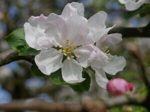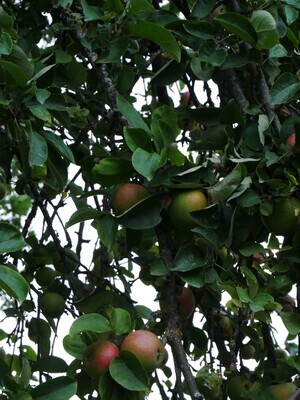 Die Apfelsorte Geheimrat Dr. Oldenburg wurde1897 an der damaligen Höheren Lehranstalt für Obstbau zu Geisenheim gezüchtet. Es handelt sich dabei um eine Kreuzung aus den Sorten Minister von Hammerstein und Baumanns Renette. Die ersten Äpfel wurden 1904 geerntet und zu Ehren von Geheimrat Regierungsrat Dr. Oldenburg, vortragender Rat im damaligen landwirtschaftlichen Ministerium in Berlin, benannt. Die Äpfel der Sorte Geheimrat Dr. Oldenburg sind mittelgroße, hochgebaute Tafelfrüchte mit gelbgrüner, auf der Sonnenseite teils kräftig roter Schale. Das Fruchtfleisch ist locker und saftig. Der Geschmack ist fein süßsäuerlich. Die Apfelsorte wird nur selten gewerbsmäßig angebaut. Die geschmackliche Qualität der Äpfel gilt „selbst auf guten Standorten“ als „bescheiden“. Indes ist die Apfelsorte „aufgrund ihres einzigartigen, fast exotisch wirkenden Geschmacks in vielen Liebhabergärten“ anzutreffen. Möglicherweise im Rahmen des Sortengartens Ende der 1980er-Jahre gepflanzt und deutlich weniger beschnitten als die anderen Bäume.