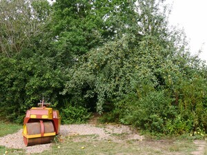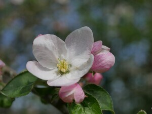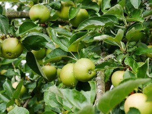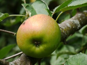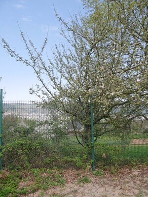 Kaiser Wilhelm ist eine alte Apfelsorte, die im Rheinland zunächst unter dem Namen Peter Broich bekannt war. Als Kaiser-Wilhelm-Apfel wurde sie dann überregional bekannt.Die Apfelsorte Kaiser Wilhelm wurde 1864 als bereits veredelter Baum im Garten von Haus Bürgel in der Urdenbacher Kämpe zwischen Düsseldorf-Urdenbach und Monheim-Baumberg aufgefunden. Der Volksschullehrer und Pomologe Carl Hesselmann (1830–1902) aus Witzhelden (Bergisches Land) ließ den Apfel 1875 Kaiser Wilhelm zur Geschmacksprobe vorlegen, der daraufhin die Namensverwendung für „diesen wahrhaft majestätischen Apfel“ huldvoll genehmigte und sich mit einer gerahmten Fotografie mit eigenhändiger Unterschrift bedankte. Aufgrund genetischer Untersuchungen wurde inzwischen festgestellt, dass die Sorte aber schon älter ist und zuvor unter dem Namen Peter-Broich-Apfel bekannt war, benannt nach einem rheinländischen Pfarrer. Das Problem an dieser Apfelsorte war und ist, dass der Baum stark in die Höhe wächst und somit kommerziell kaum interessant ist. Deshalb verschwand er spätestens in den 1950er Jahren aus dem Erwerbsanbau in Deutschland. Der Apfel hat sich deshalb, obwohl wenig empfindlich, nur in privaten Gärten und einigen bäuerlichen Streuobstwiesen erhalten. Möglicherweise im Rahmen des Sortengartens Ende der 1980er-Jahre gepflanzt und deutlich weniger beschnitten als die anderen Bäume.