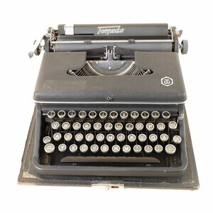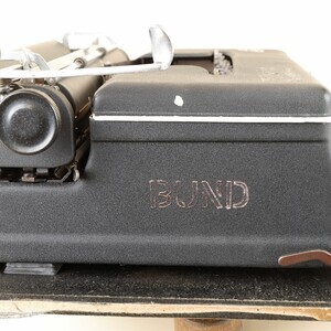 Die Torpedo-Werke AG (Weil-Werke) waren ein Hersteller von Fahrrädern und Büromaschinen in Frankfurt am Main. 1943/1944 wurden die Werke durch Luftangriffe stark zerstört. Bereits 1945 konnte wieder mit der Fertigung von Kleinschreibmaschinen begonnen werden. Es folgten die Buchungsmaschinen und ab 1952 Fahrräder und Motorräder bis 200 ccm. Bei unserem Objekt handelt es sich um eine Kleinschreibmaschine, Modell „Torpedo 18“. An Hand der Herstellungsnummer 483 159 lässt sich das Produktionsjahr 1948/49 zweifelsfrei zuordnen. Seitlich wurde der Name ""BUND"" an Hand einer Schablone eingeritzt. Da die Bundesrepublik (5/1949) gegründet wurde, könnte die Torpedo 18 in ihrer Gründungszeit angeschafft worden sein. Sollte die Bezeichnung BUND für die Bundeswehr stehen, wäre es möglich, dass nach deren Gründung 1955, die Schreibmaschine im Rahmen der Amtshilfe, dorthin gelangte. Der Korpus der Torpedo ist aus Metall gefertigt und mit einem schwarzen Kräusellack überzogen. Technisch gesehen ist es eine Typenhebelmaschine mit Wagnergetriebe und Vorderaufschlag. Ausgestattet ist die Maschine mit einer deutschen, vierreihigen QWERT Tastatur, Rücktaste, Wagenfeststeller, 2-farben Band und Zeilenschaltung. Die Torpedo 18 wurde uns freundlicherweise von Herrn Wagner (Firma Wagner, Armeefahrzeuge GmbH, Steingasse 5, 56288 Hollnich/Hunsr.), nach einem Besuch in unserem Museum, zu Verfügung gestellt. Dafür herzlichen Dank.