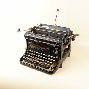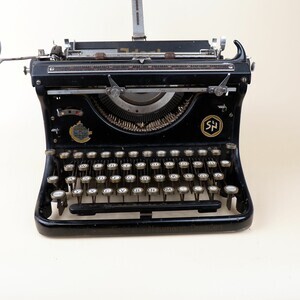 Im Jahr 1933 ergänzte Seidel & Naumann die Ideal D –Serie um das das Modell Z33. Es handelt sich um eine schwere Büromaschine unter dem Namen IDEAL. Unser Objekt hat die Produktionsnummer 719 989 und wurde 1936 hergestellt. Die „IDEAL D Z33“ war eine Standardmodell für das Büro. Sie hatte eine vierreihige QWERT Tastatur mit 46 Tasten. Mittels einfacher Umschaltung konnten 92 verschiedene Zeichen im Vorderaufschlag geschrieben werden. Ferner war die Maschine u.a. ausgestattet mit einem Tabulator, Rückspulen des Farbbandes per Handkurbel, 2 Farben Band und Rücktaste. An der Frontseite ist eine Aufkleber mit dem Firmenlogo von Seidel und Naumann sowie ein Aufkleber des damaligen Inhabers: Carl Engers – Inh.: ? Jörges, Koblenz, Ruf 966. Insgesamt zeigt die Maschine starke Altersspuren mit leichtem Rostansatz. Da die Typen noch einwandfrei funktionieren, lohnt eine Überholung.