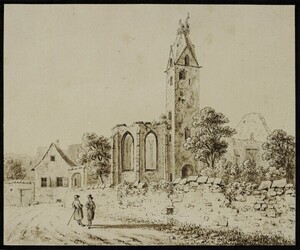 Der Udenturm (auch Utenturm, Kürschnerturm oder Pfalzturm genannt) gehörte zur nordöstlichen Stadtfestigung von Speyer. Er stand in direkter Nachbarschaft zum Heidentürmchen. Ein Teil des mittelalterlichen Wehrgangs, der die Türme verbunden hat, ist noch erkennbar. Aus der Zeit als die Türme der Stadtmauer den Zünften zugeordnet wurden ist noch der Name Kürschnerturm überliefert. Der Turm grenzte unmittelbar an den Garten der Bischofspfalz, die Residenz des Speyerer Bischofs neben dem Dom. Peter Gayer war bayerischer Regierungsbeamter und seit 1823 Leiter des Kreisarchivs des Bayerischen Rheinkreises in Speyer (heute Landesarchiv). Von seiner Hand sind viele Darstellungen von Architekturzeugnissen der Pfalz erhalten. Darunter finden sich Ruinen der zerstörten Stadt Speyer, die bis zur Mitte des 19. Jahrhunderts teilweise abgerissen wurden, aber auch kirchliche Gebäude der Pfalz. Gayer präsentiert seine Architekturzeichnungen gerne im Kleid der romantischen Ruinendarstellungen seiner Zeit und versieht sie zugleich mit figürlicher Staffage.