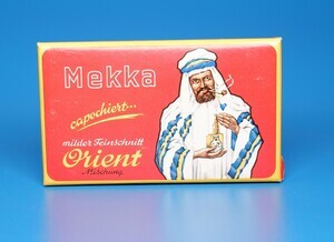Gebrüder Crüwell ist eine ehemalige Rauchtabakfabrik aus der ostwestfälischen Stadt Bielefeld. Erstmals amtlich erwähnt im Jahr 1705. Erst 1983 wurde der Betrieb eingestellt. Heute existiert noch ein Tabakwarenfachgeschäft im historischen Crüwell-Haus, das sich stilisiert, auf jeder Packungen wiederfindet. Die milde Orient Feinschnitt Mischung mit Namen MEKKA wurde vom Verbraucher entweder zur Zigarette gedreht oder in einer sogenannten Shag Pfeife (Pfeife mit kleinem Kopf) geraucht. Die rote Packung, mit gelben Elementen, hat eine starke Signalwirkung. Die Abbildung eines Arabers, der den Tabak in einer Shag Pfeife raucht, unterstützt die Packungsaussage „Orienttabak“ genauso wie der Produktame "MEKKA." Der Begriff "capochiert" ist eine reine Werbeaussage, die bedeuten soll, dass nur die Blattspitzen (caput, das Haupt) verarbeitet wurde. Das sollte eine hohe Qualität signalisieren.