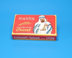 Gebrüder Crüwell ist eine ehemalige Rauchtabakfabrik aus der ostwestfälischen Stadt Bielefeld. Erstmals amtlich erwähnt im Jahr 1705. Erst 1983 wurde der Betrieb eingestellt. Heute existiert noch ein Tabakwarenfachgeschäft im historischen Crüwell-Haus, das sich stilisiert, auf jeder Packungen wiederfindet. Die milde Orient Feinschnitt Mischung mit Namen MEKKA wurde vom Verbraucher entweder zur Zigarette gedreht oder in einer sogenannten Shag Pfeife (Pfeife mit kleinem Kopf) geraucht. Die rote Packung, mit gelben Elementen, hat eine starke Signalwirkung. Die Abbildung eines Arabers, der den Tabak in einer Shag Pfeife raucht, unterstützt die Packungsaussage „Orienttabak“ genauso wie der Produktame "MEKKA." Der Begriff "capochiert" ist eine reine Werbeaussage, die bedeuten soll, dass nur die Blattspitzen (caput, das Haupt) verarbeitet wurde. Das sollte eine hohe Qualität signalisieren.