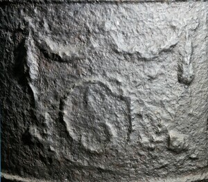 Kleiner Pottofen zur Verfeuerung von Holz. Der Ofen besitzt eine ungeteilten Feuerraum (ohne Rost) und ist deshalb nur zur Verfeuerung von Holz geeignet. Die einzige Füllklappe befindet sich vorne unten. In der Füllklappe ist eine weitere kleine Klappe zur Regulierung der Luftzufuhr eingelassen. Rechts darüber ist ein Ornament mit klassizistischen Dekor und in diesem ein S oder eine 8 in einem Kreis. Möglicherweise ist dies ein (bisher unentzifferter) Hüttenstempel. Ansonsten gibt es keine Information zum Hersteller. Die Datierung ist schwierig, da Öfen dieses Typs in Deutschland von ca 1800 bis weit in das 20. Jahrhundert hinein hergestellt wurden. Der Pottofen hat seinen Namen von dem Hüttenwerk Coolebrook-da bei Pottstown in Pennsylvania, das ab 1735 runde Stubenöfen fertigte.