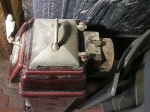 Dunkelroter emaillierter Füllregulierofen der irischen Bauart, Hergestellt von der Firma Wibo (Hamburg). Ganz oben eine Klappe zum Einfüllen des Brennguts. Reguliermöglichkeiten am Ausgang zum Schornstein oben, hinten am Ofen und unten an der Tür zum Aschekasten. Innen Auskleidung mit Schamotte. Ein Firmenschild ist an der oberen Klappe angebracht. Zurückhaltender Dekor auf drei Seiten im Stil der 1920er Jahre. Die Firma existiert 2021 immer noch und stellt heute elektrische Heizgeräte her.