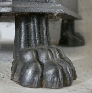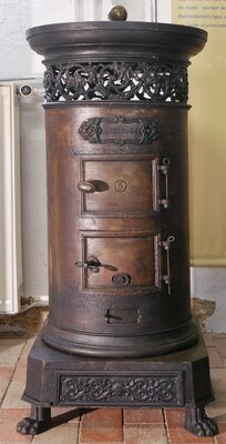 Ein kleiner auf Löwenpfoten stehender runder Regulierofen. Im Aschekasten eine Schublade zum Entsorgen der Asche. Darüber die Brennkammer mit 2 Türen. Darunter eine Reguliermöglichkeit in Form eines Schiebers über einen Schlitz. Über den beiden Türen zur Brennkammer die Inschrift Loulans im Rahmen. Dort endet die Brennkammer mit einer Platte die auch zum Kochen oder zum Erwämen von Bügeleisen verwendet werden kann. Ganz oben befindet sich ein durchbrochener Rundfries mit auskragendem profiliertem Sims. Ein fast identischer Ofen mit Ornamenten in der Form von Weintrauben und Feldfrüchten findet sich unter der Inventarnummer HR / 658 / 2020.
