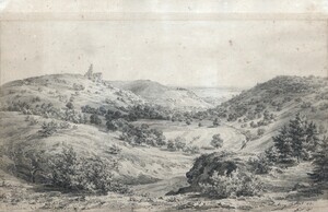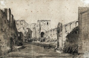 Bleistiftzeichnung der Ruine mit einer Bezeichnung des Künstlers am unteren rechten Bildrand: "Limburg, May (18)44". Kurz zuvor, im Jahr 1843, hatte die Stadt Bad Dürkheim erste Maßnahmen auf den Weg gebracht, um die Ruine zu erhalten. Die Kommune kaufte die Ruine vom Staat und ließ um sie herum, aber auch innerhalb des Kirchenschiffs einen englischen Landschaftsgarten durch den Heidelberger Universitätsgärtner und großherzoglich badischen Gartendirektor Johann Christian Metzger (1789–1852) anlegen. Der Künstler Christian Kiefer beschäftigte sich 1843/44 mit der Anfertigung von Zeichnungen von der Limburg, von der Hardenburg und von Bad Dürkheim. Er arbeitete im Auftrag der lithographischen Kunstanstalt von Johann Peter Wagner (1802 - 1847) in Karlsruhe, der einige frühe Reiseführer herausgab. In diesem Fall wurden einige der Zeichnungen für die Illustration des Werkes "Führer für Fremde durch die Ruinen des Klosters Limburg und des Schlosses Hardenburg nebst der Umgebung von Bad Dürkheim an der Haardt" mit einem Text von Pfarrer Johann Georg Lehmann genutzt. Die Publikation erschien 1844. Die biografischen Daten des Künstlers müssen noch erforscht werden. In einer Zeit als viele Historischen Vereine und Heimatvereine ins Leben gerufen wurden und sich ein allgemeines Interesse für die Kultur und Geschichte der Region entwickelte, gab Wagner (vielleicht nach dem Beispiel von Karl Baedecker 1832) einige Fremdenführer heraus. Weitere Beispiele sind der "Führer für Fremde durch die Umgebung von Achern" und der "Führer für Fremde nach Allerheiligen und den benachbarten Wasserfällen" mit Texten von Dr. Joseph Bader.