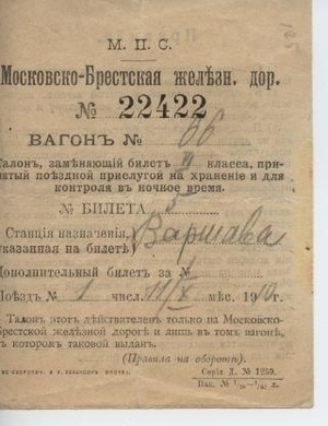 Blatt mit Beschriftung in russischer Sprache, mit Bleistift wurden auf der Rückseite Eintragungen gemacht