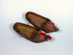 Ein Paar Herrenschuhe aus schwarzem Stoff. Spitze Form. Die Schuhe sind bestickt und verfügen über dicke Sohlen von circa 3,5cm. Diese Schuhe stammen aus China. Datiert auf etwa 1900.