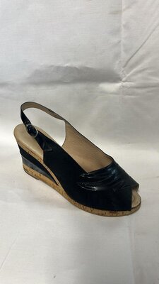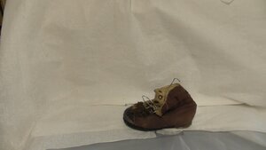 Ein einzelner Herrenschuh aus schwarzem und weißem Satin-Stoff. Spitze Form, dicke Sohle (ca. 1,5cm). Der Schuh ist bestickt mit einem Blumenmuster und stammt aus China. Datiert auf die Mitte des 19. Jahrhunderts.