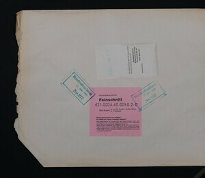 Bereits 1906 führten die Preußen im Deutschen Reich die bis heute übliche „Banderolensteuer“ für Tabakwaren ein. Mit einer Banderole wurde jedes Päckchen Zigaretten, Zigarren, Feinschnitt oder Pfeifentabak versiegelt. Damit war sichergestellt, dass nur versteuerte Waren in den Verkauf gelangte. Die Banderolen selbst, werden in der Bundesdruckerei in Berlin gedruckt und nach Bezahlung der „Banderolensteuer“ an die Hersteller ausgeliefert. Die Auslieferung erfolgte in 41 cm breiten Briefumschlägen, die auf der Rückseite, mittels Stempel und Aufkleber, versigelt wurden. Damit der Empfänger dennoch den Inhalt –ohne das Siegel zu verletzen- prüfen konnte, wurde die linke untere Ecke –die sogenannte Zählecke- abgeschnitten. Sollte tatsächlich eine Differenz bestehen, so musste der Fehlinhalt amtlich festgestellt werden. Die geschah entweder durch das Hauptzollamt oder die Steuerzeichenstelle (Bundesdruckerei). (siehe Bild „Zählecke“) In unserer Sammlung befindet sich ein Konvolut von versiegelten Umschläge in denen Steuerbanderolen für Zigaretten, Feinschnitt und Pfeifentabak ausgeliefert wurden. Sie stammen allesamt aus der Bundesdruckerei in Berlin und wurden und 1983/1984 gedruckt.