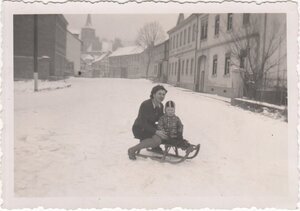 Bleistiftzeichnung, 230 x 177 mm, auf schwarzem Karton aufgeklebt. Das Bild zeigt das Höver´sche Haus/Bauernhof in der Dorfstraße (heute Hauptstraße 91) in Bad Bodendorf mit einem Dorfbrunnen am Straßenrand. Die Familie Lersch war mit der Familie des Landwirtes Höver befreundet und zum Ausgleich half er bei der Feldarbeit und Ernte immer im Bauernhof.
