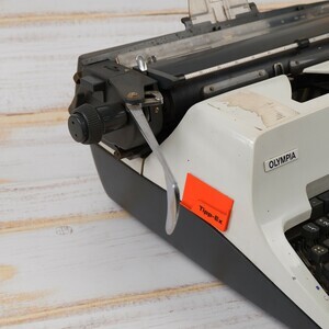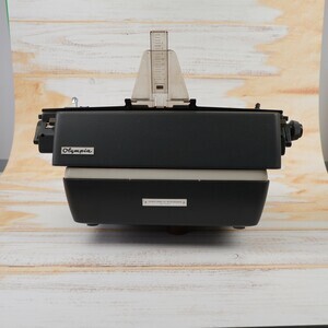 Bei unserem Objekt handelt es sich um eine Büroschreibmaschine von Olympia aus Wilhelmshaven. Die Maschine trägt die Typenbezeichnung SG 3 N, hat die Herstellungsnummer 7 - 2.658462 und wurde 1971 produziert. Erst 2 Jahre zuvor erhielt dieser Typ ein neues Gehäuse mit einer weißen Oberschale und grauem Unterteil. Neu ist auch das Olympia Logo an der Vorderseite und der Name OLYMPIA, nun in Großbuchstaben. Die Büromaschine hat die übliche Ausstattung wie z.Bsp. Zeilenschaltung, Tabulator, Rücktaste, Wählhebel für ein 2 Farbenband und Matrixeinstellung. Der Wagen ist mit 53 cm breiter als üblich, so dass DIN A 4 Bögen quer beschriftet werden können. Zur Umschaltung auf Großbuchstaben verfügt das Modell über eine Segmentumschaltung. (Absenkung des Typenkorbs) Wie alle Olympia Modell hat auch die SG 3 einen weichen Anschlag. Technisch ist es eine Typenhebelmaschine mit Wagnergetriebe und Segmentumschaltung.