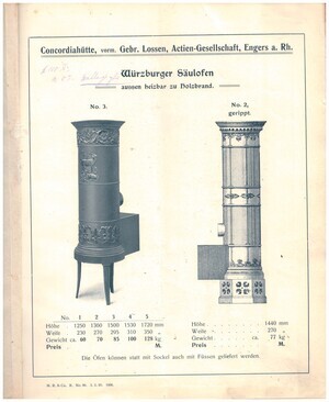 Produkt-Katalog der Concordiahütte von 1903-1905. Es handelt sich um 63 einzelne Blätter mit Abbildungen verschiedener Produkte wie Herde und Öfen, die zu einem Buch in Leinen gebundenen wurden.