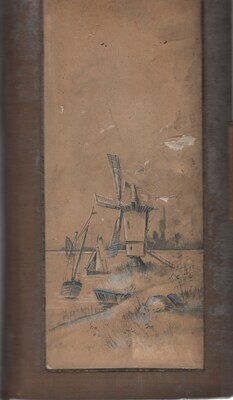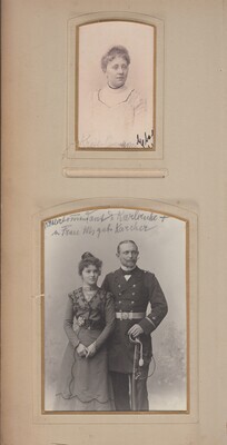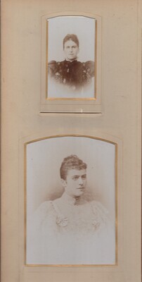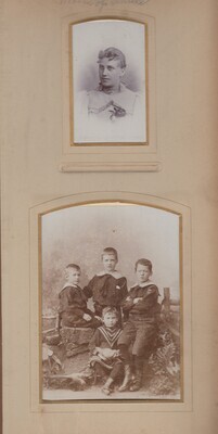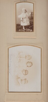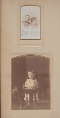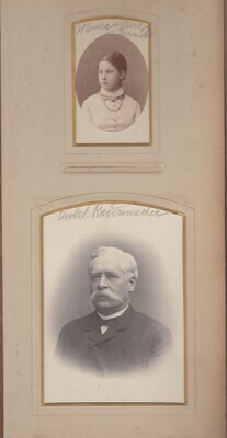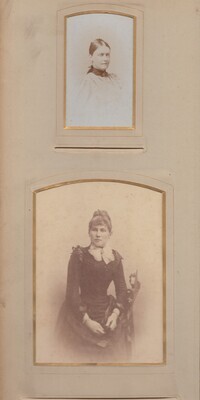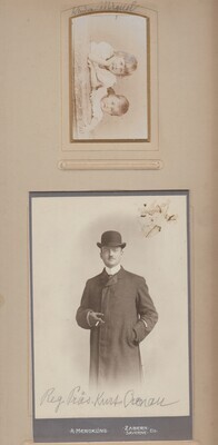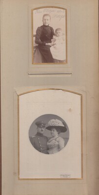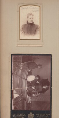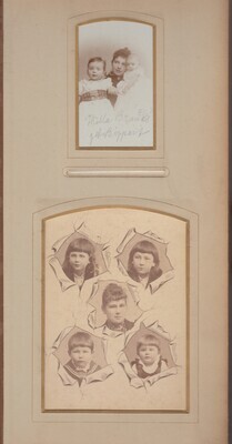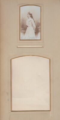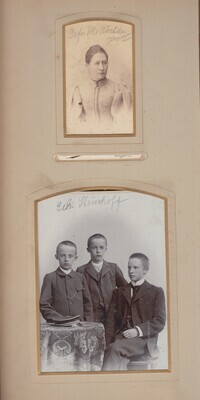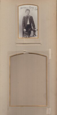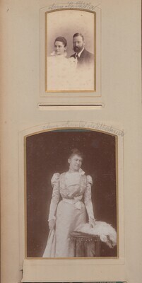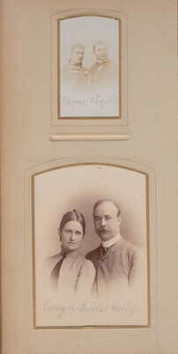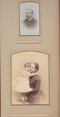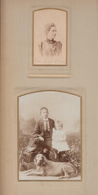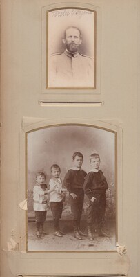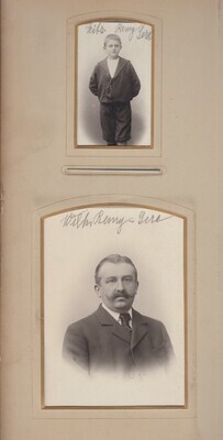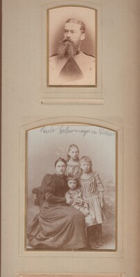 Fotoalbum aus dem Besitz der Familie Franz (1826-1912) und Emilie Remy (geborene von Runkel 1835-1897) in Bendorf. Emilie ist auf der angezeigten Seite oben auf einer sog. Carte-de-Visite als ältere Dame zu erkennen. Das in grauem Samt eingeschlagene und in Leinen gebundene Album ist mit einem vergoldeten Messingverschluss versehen. Es ist auf der Vorderseite verziert mit einer Malerei in Grautönen, die eine Uferlandschaft mit kleinen Segelbooten und einer Windmühle zeigt. Das Fotoalbum umfasst 16 Kartons, mit Goldrand und je zwei Fotoeinschüben auf der Vorder- und Rückseite. Die Fotografien zeigen Mitglieder der Familie Remy in Bendorf und solche der Linie "Rasselstein Neuwied". Franz und Emilie Remy lebten in dem heute noch erhaltenen klassizistischen Wohnhaus mit Parkanlage Ecke Rheinstraße/Untere Vallendarer Straße in Bendorf. Das Wohnhaus soll an der Stelle des Landhauses "Baumlust" des Eisenhüttenbesitzers Wilhelm Remys erbaut worden sein. Franz Remy, direkter Nachkomme des Johannes Remy (Vetter des Wilhelm Remy), arbeitete in den Emser (heute Bad Ems) Blei- und Silberwerken der Familie und wohnte in Bendorf.