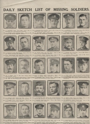 Aushang mit Fotografien 36 vermisster britischer Soldaten