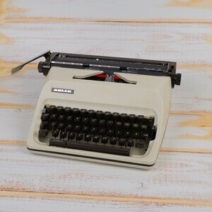 Im Jahr 1956 übernahm die Firma Max Grundig (Unterhaltungselektronik), erst die Aktienmehrheit der Triumph Werke, 1 Jahr danach, die der Adler Werke. Seit 2009 gehört Triumph Adler zum japanischen Kyocera Konzern. Unsere Adler Junior 12 ist eine tragbare Klein- oder Reiseschreibmaschine wie sie häufig in privaten Haushalten oder kleineren Geschäften zu finden war. Die Seriennummer 14.047.973 lässt darauf schließen, dass die Maschine in den 90er Jahren in Japan – für Triumph Adler- hergestellt wurde. Optisch präsentiert sich die Adler in einem weißen Plastikgehäuse, wovon sich die schwarze Tastatur und der gleichfarbige Wagen angenehm abheben. Die Junior 12 hat alle Merkmale die in den 1990er Jahren von einer Schreibmaschine erwartet wurden. Eine deutsche QWERT Tastatur, Wagenfeststeller, Rücktaste, Randsteller, Zeilenschalthebel, 2 Farbenband, Anschlagregler u.a. Technisch handelt es sich um eine Typenhebelschreibmaschine mit Vorderaufschlag, Wagnergetriebe und Segmentumschaltung. Ein schwarzer Hartschalenkoffer schütze die Adler bei nichtgebrauch und garantiert eine schonende Transportmöglichkeit. Verkauft wurde sie, wie ein Schild auf der Rückseite zeigt, von der Firma Crummenauer, Neustrasse 89 in Trier.