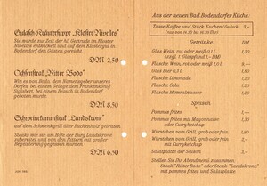 Speisen- und Getränkekarte Burgfest in Bad Bodendorf 1982