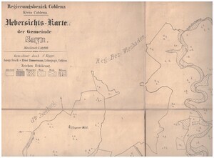 Karte "Regierungsbezirk Coblenz / Kreis Koblenz / Uebersichts-Karte / der Gemeinde / Sayn / Maaßstab 1 : 10 000 / Gezeichnet durch C. Köppe / Autogr. Druck v. Ernst Zimmermann, Lithograph, Coblenz"