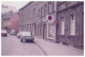 Die Farbfotografie zeigt eine Ansicht der Hauptstraße 117-119 in Bendorf. In der Bildmitte befindet sich der "Salon Geißler".