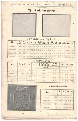 Musterheft Treppenroste und Öfen, Concordiahütte