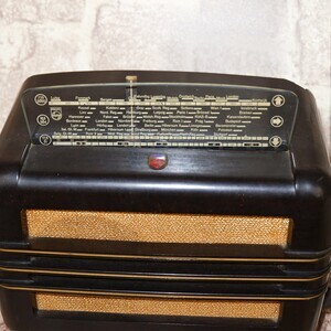 Ein kleines Tischradio von Philips in einem dunkelbraunen Bakelitgehäuse aus den Jahren 1949/1950. Gegenüber der Masse gibt es optisch, einen deutlichen Unterschied im Bereich der Senderskala. Sie liegt außerhalb des Gehäuses und wird für den Betrieb von oben her aufgesteckt. Zuvor muss der Orientierungseiger für die Sender in eine vertikale Position gebracht werden. Die Bedienelemente sind alle seitlich angebracht. Rechts ein Drehknopf für die Wellenbereiche MW/LW/KW, links ein kleinerer Drehknopf für Ein/Aus und laut/leise. Externe Anschlüsse gibt es Keine. Im Fachhandel war die Philetta für ca. 260 DM zu haben.