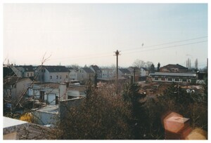 Die Farbfotografie zeigt eine Ansicht auf das Didier-Werksgelände in Bendorf beim Abriss im Jahr 1999. Am rechten Bildrand erkennt man einige Schutthaufen, da die ersten Gebäude bereits abgerissen wurden. Am linken Bildrand sieht man auf die Wohnhäuser entlang der Concordiastraße. An der Stelle des Didier-Werksgeländes entstand im Jahr 2000 ein Einkaufszentrum (Kaufland).